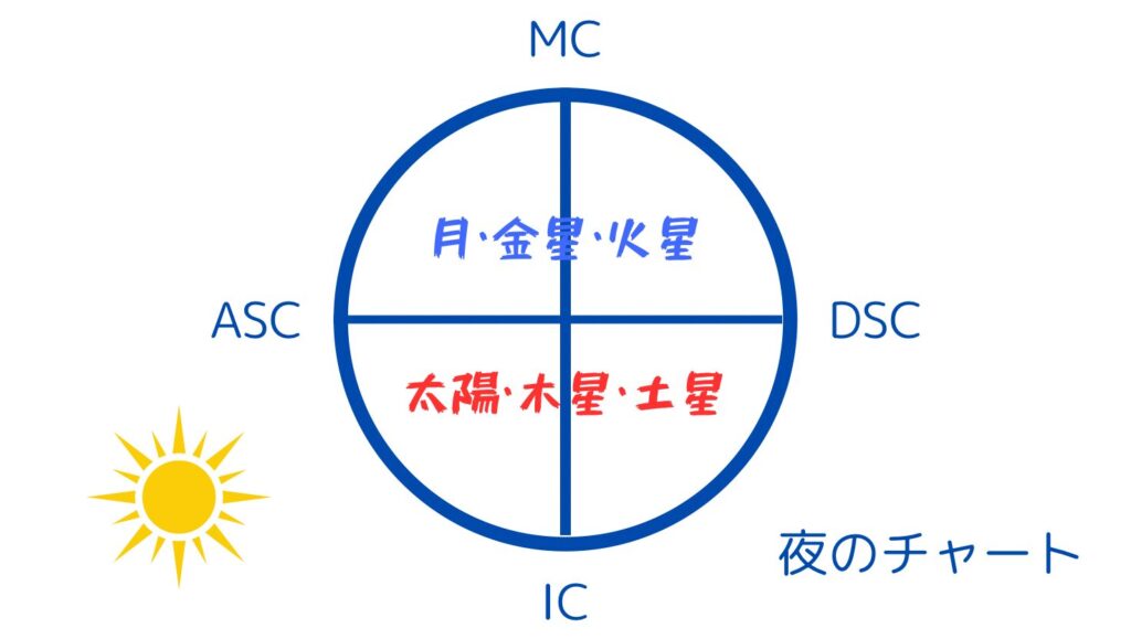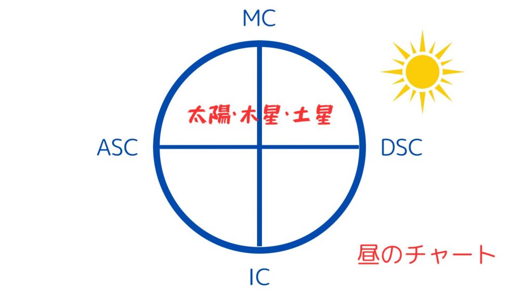 ※水星は、太陽より先にアセンダントを昇るとき昼の天体となり、太陽より後にアセンダントを昇るとき夜の天体となるためです。